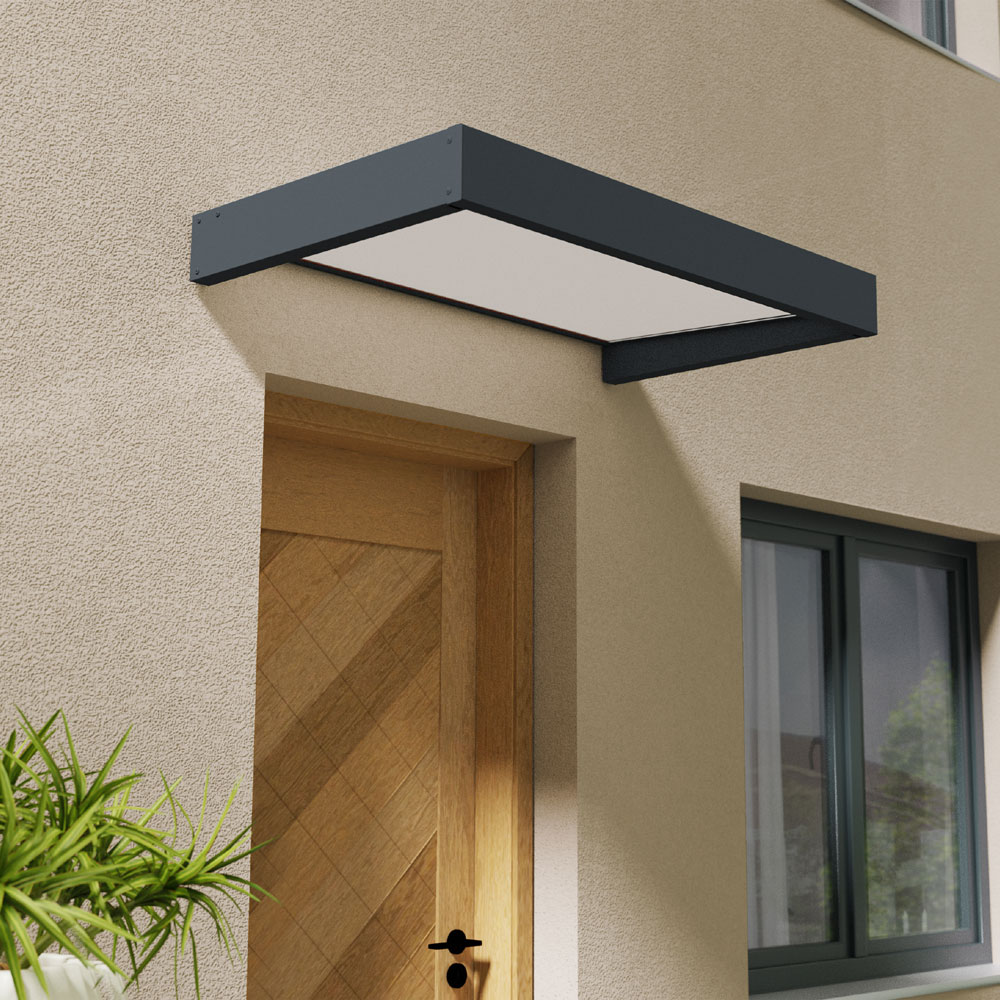 עיצוב מינימליסטי של מסגרת אלומיניום בצבע אפור ולוח בגוון לבן אופל, ישדרג את הכניסה לבית שלכם.