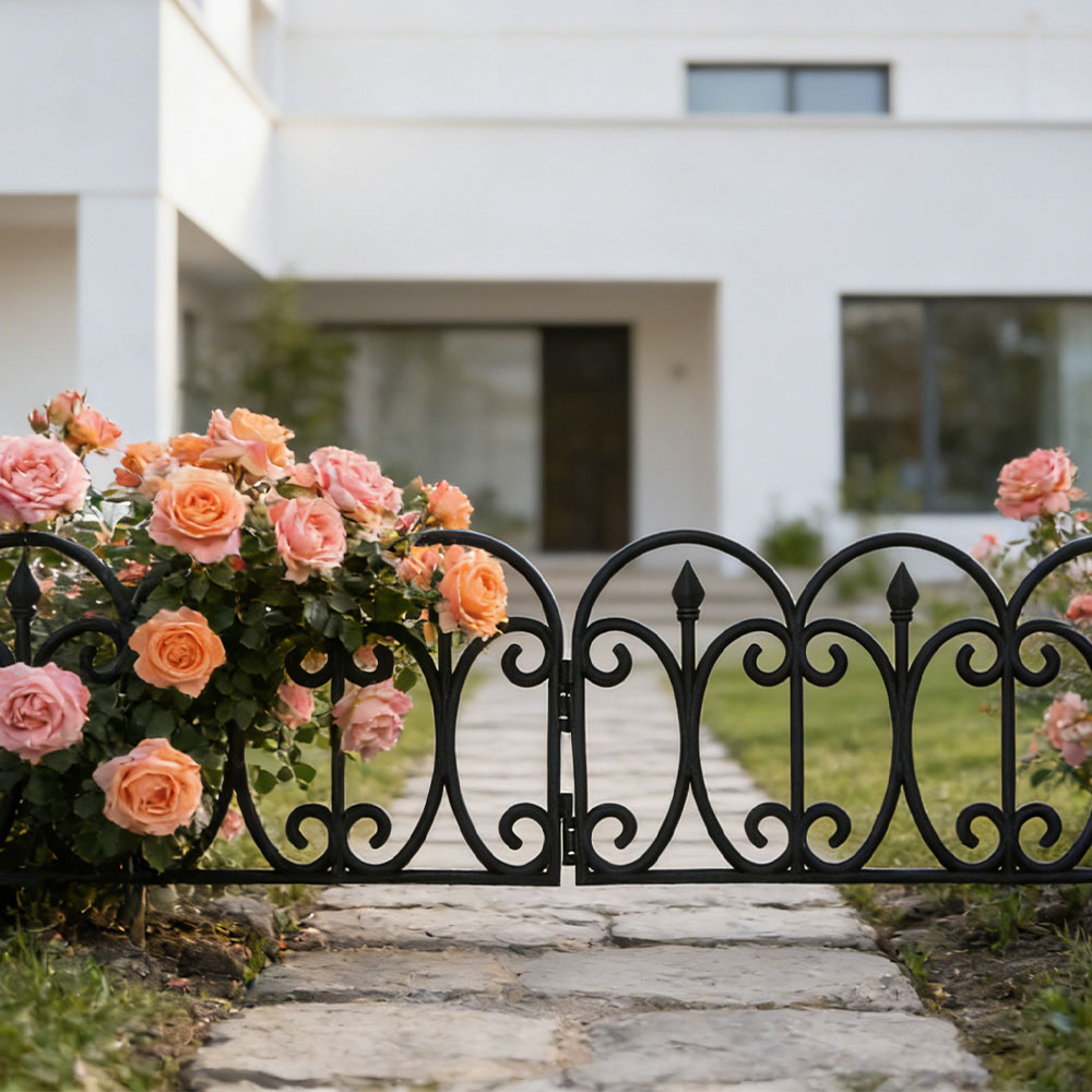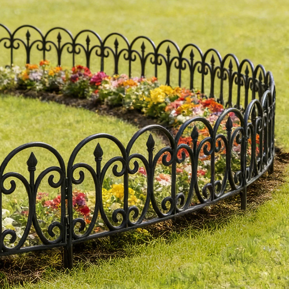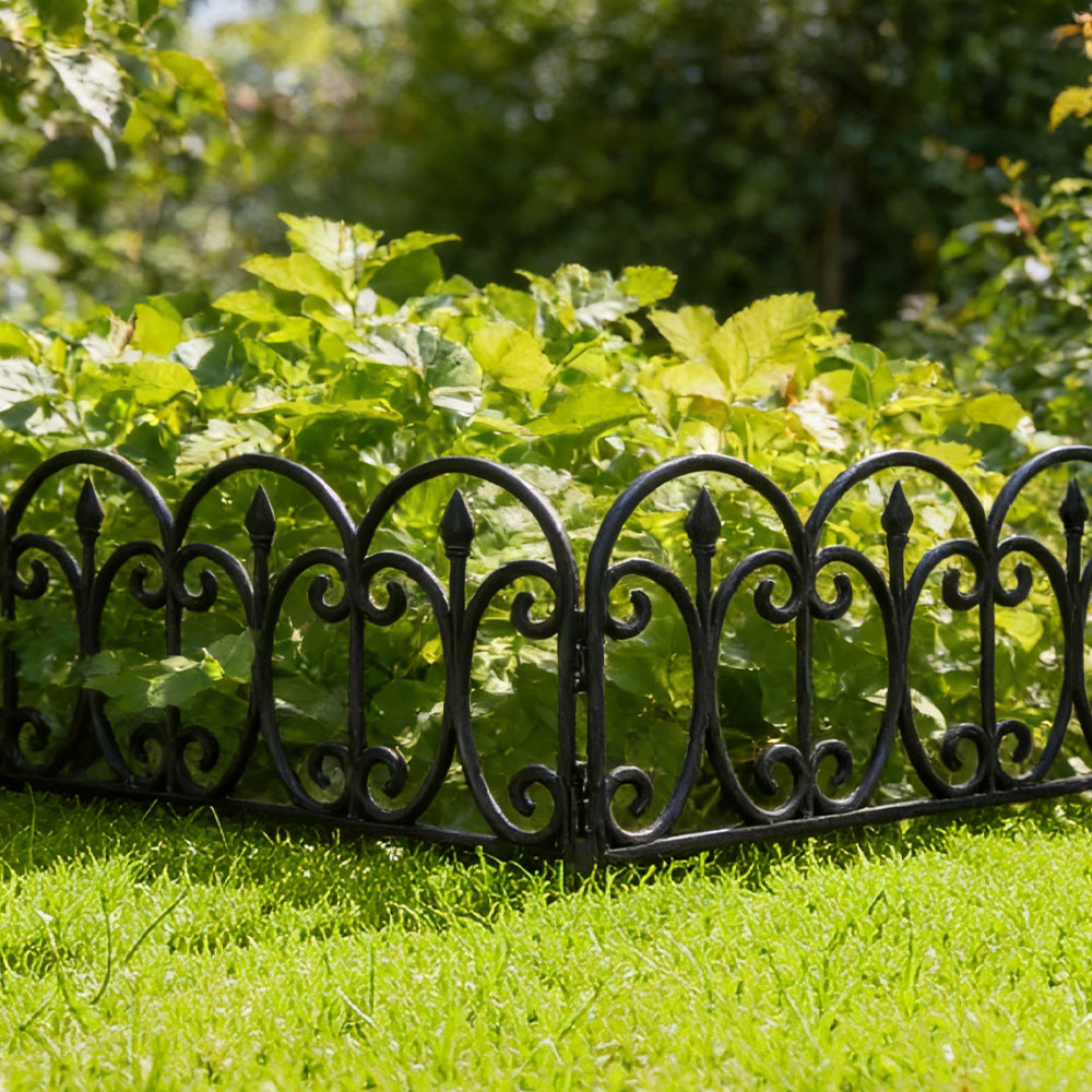גדר גינה מעוצבת בגוון שחור, המעניקה מראה נקי ומטופח לכל פינה בגינה.