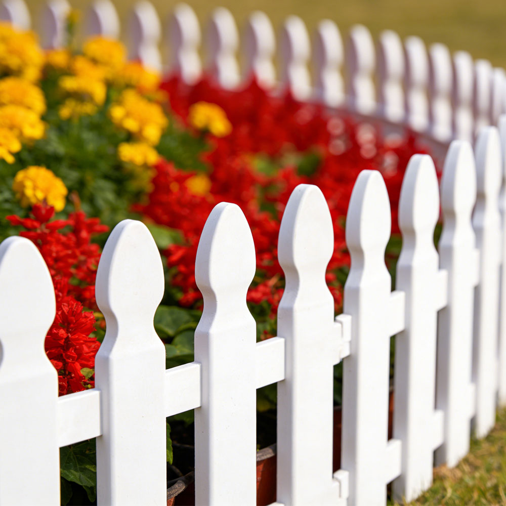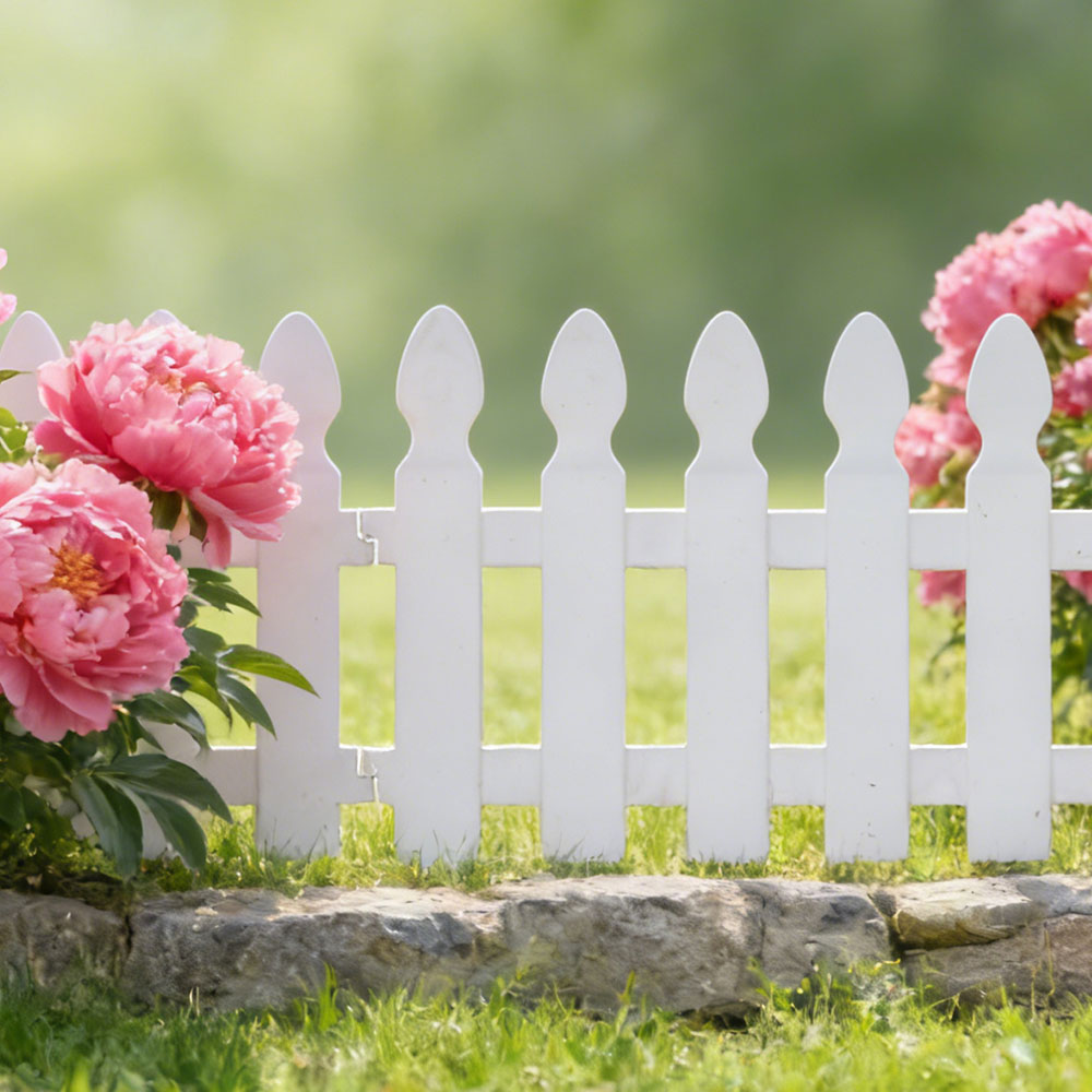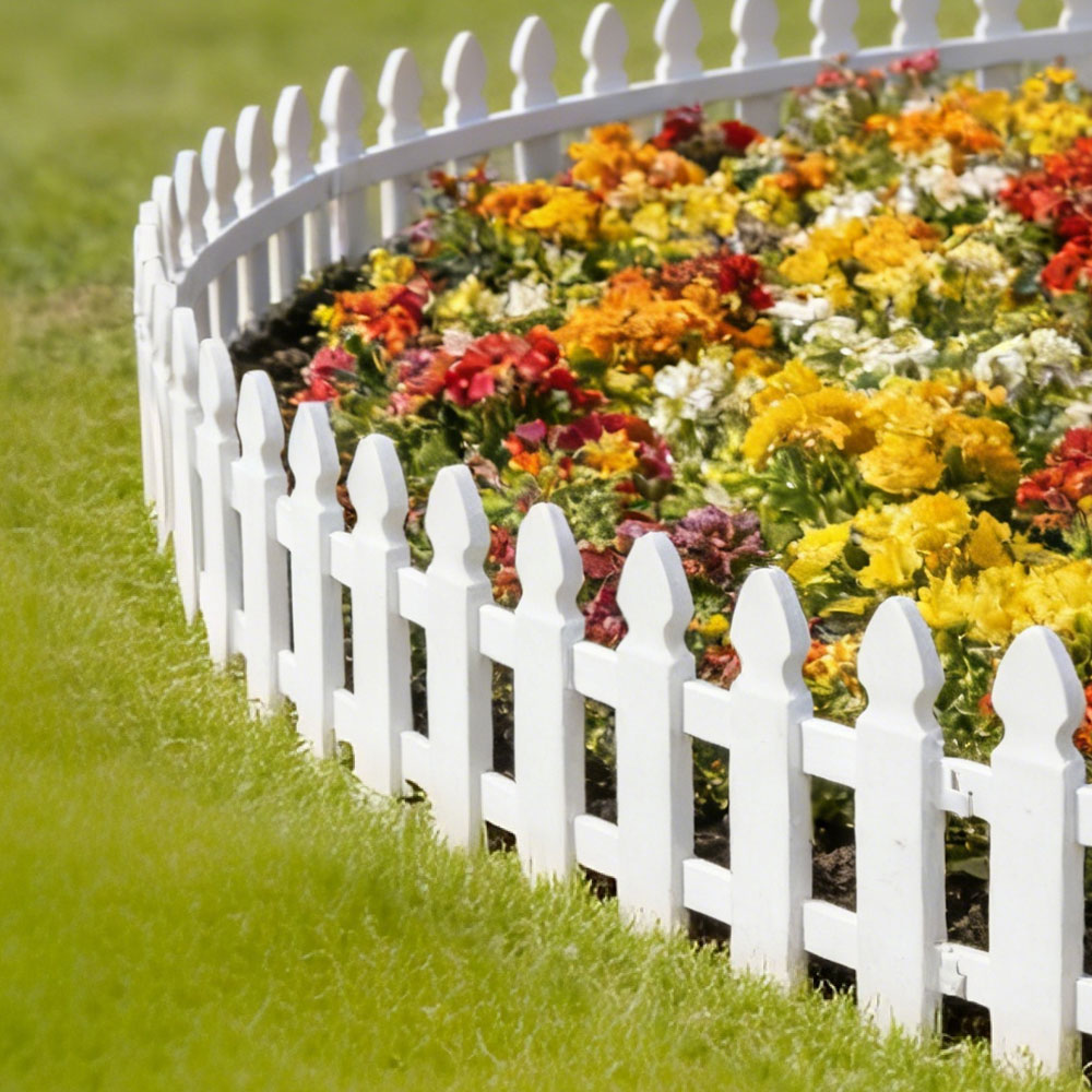 גדר גינה מעוצבת בגוון לבן קלאסי, המעניקה מראה נקי ומטופח לכל פינה בגינה.