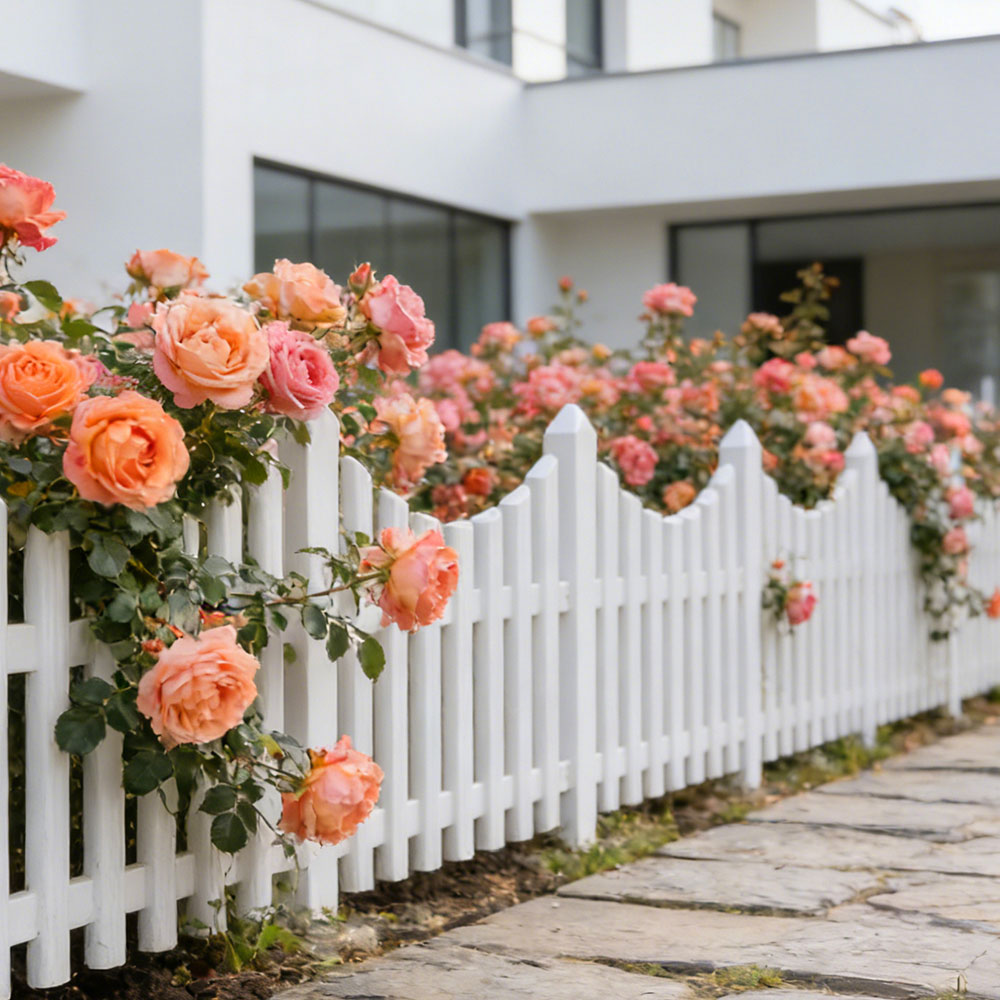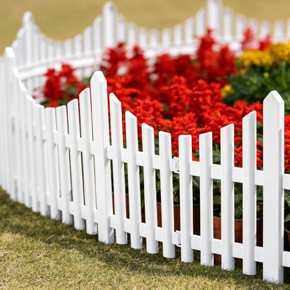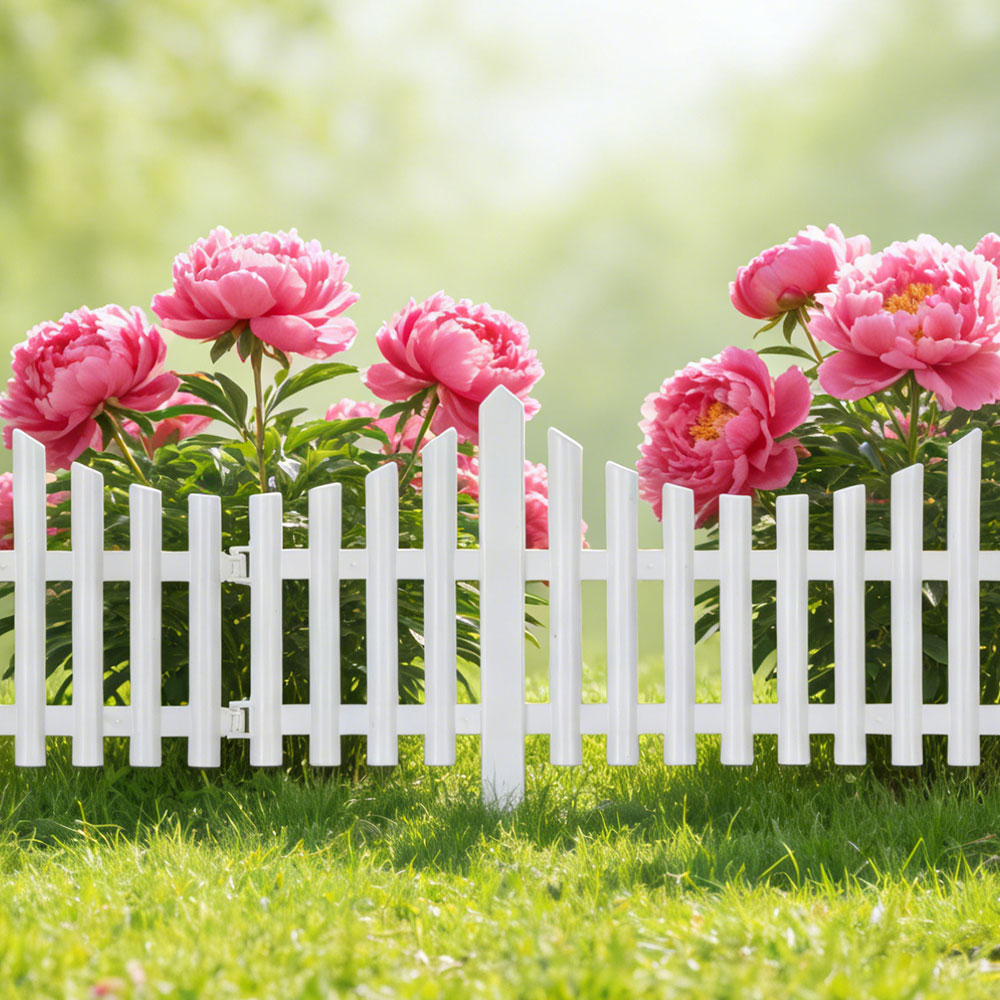 גדר גינה מעוצבת בגוון לבן קלאסי, המעניקה מראה נקי ומטופח לכל פינה בגינה.