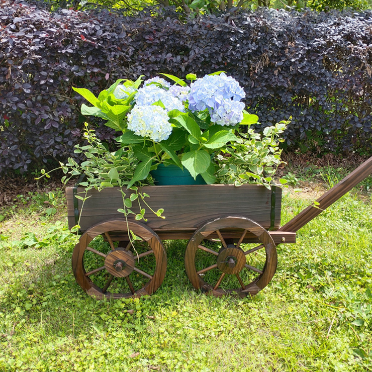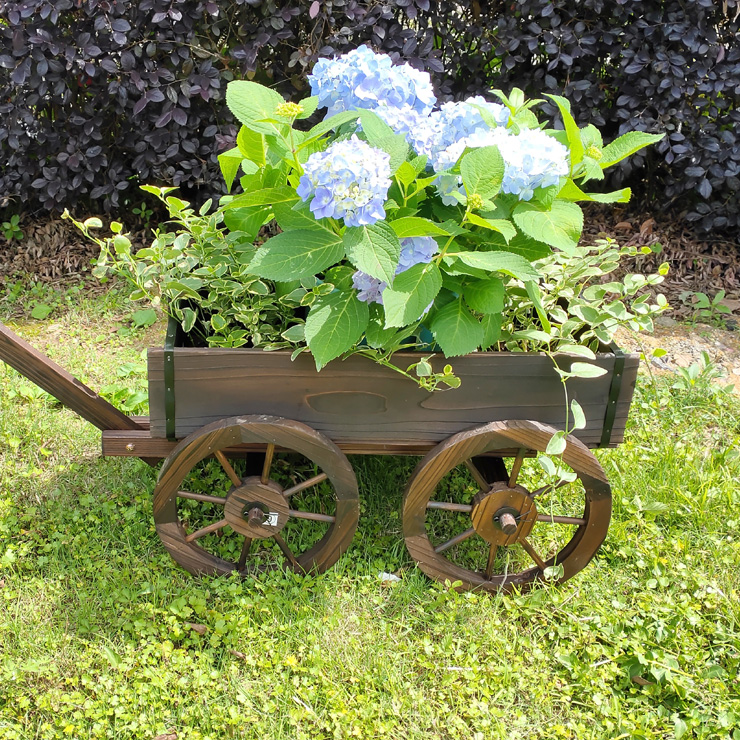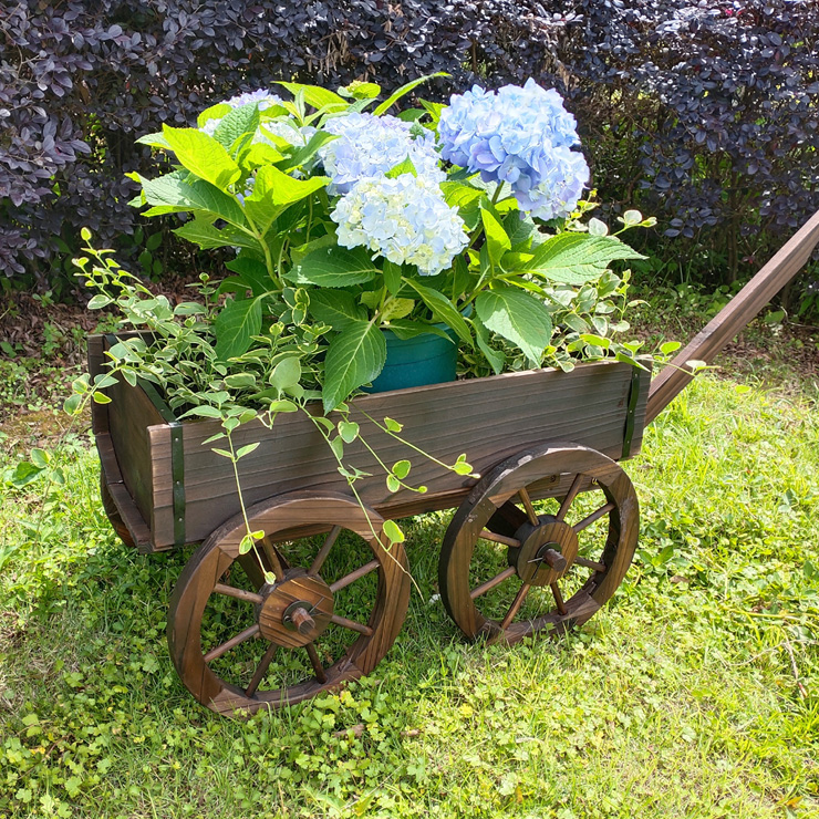 עגלת נוי מעץ מלא לעציצים או צמחים בגינה דגם 1001P