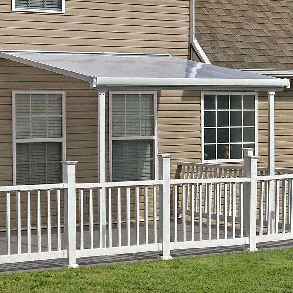 - קירוי פוליקרבונט לבן 8 מ"מ בעל עמידות גבוהה בפני טמפרטורה ושבר, עם 25% העברת אור, המספק הצללה מצוינת ומעבר אור רך ונעים בשעות היום, תוך הגנה מלאה מקרינת – UV מזיקה.