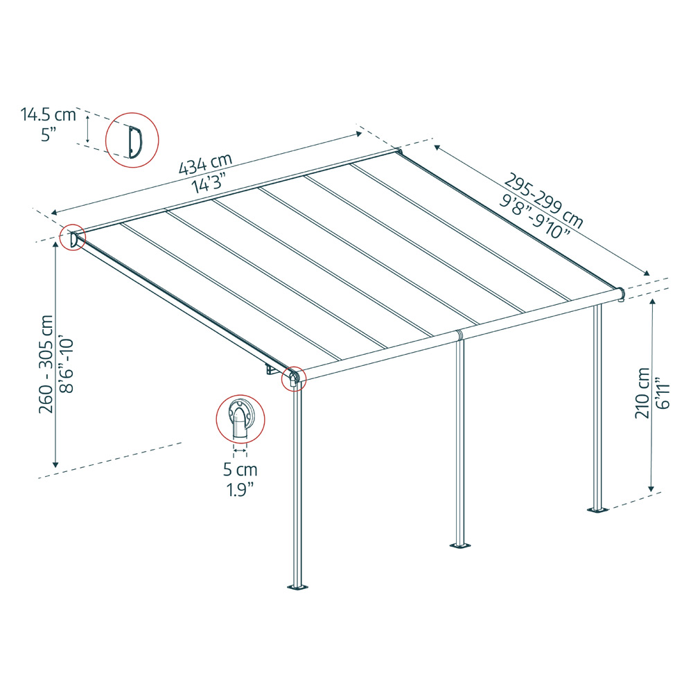 פרגולת אלומיניום 3×4.3 מ' אפורה מבית פלרם – Canopia דגם 705329 Sierra