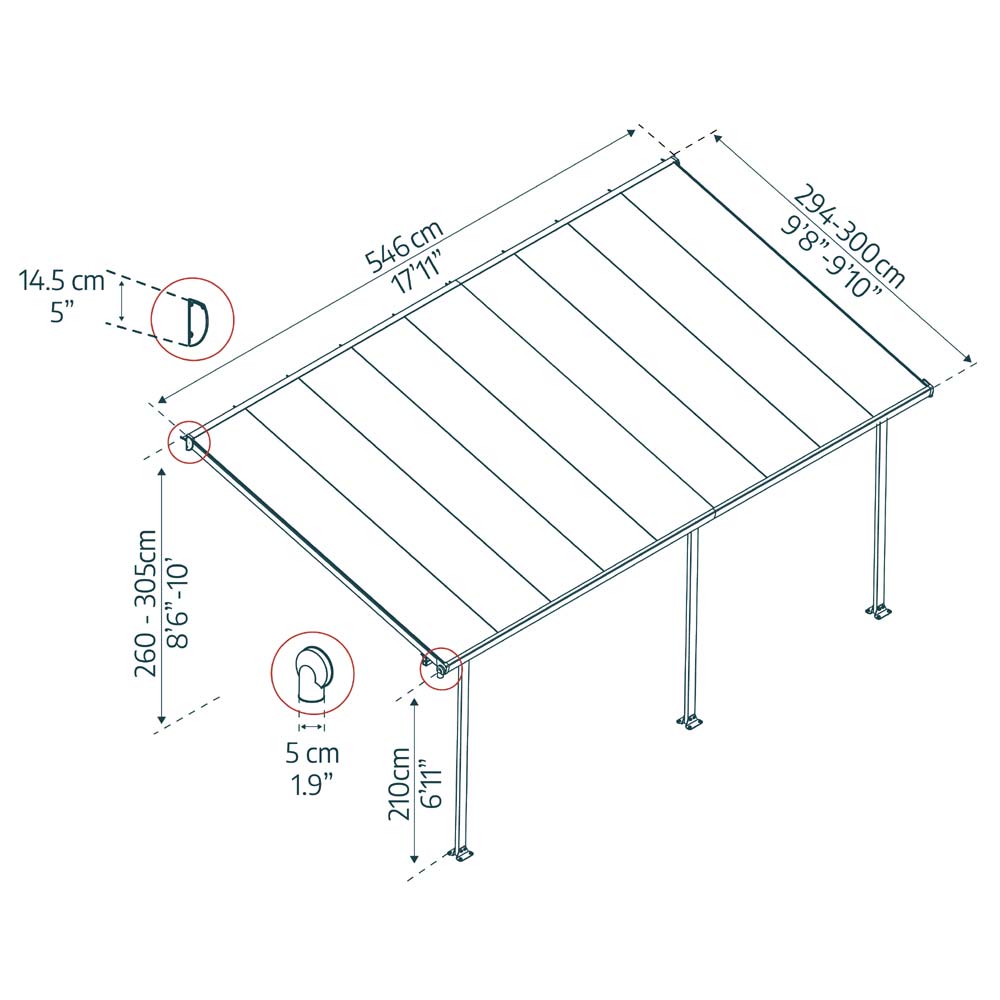 פרגולת אלומיניום 3×5.5 מ' לבנה מבית פלרם – Canopia דגם 702774 FERIA