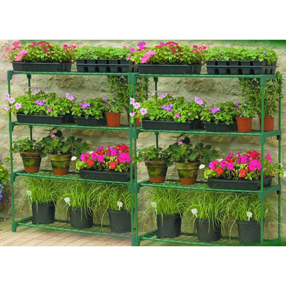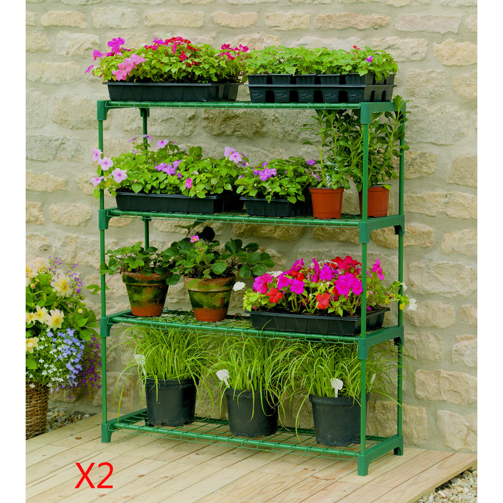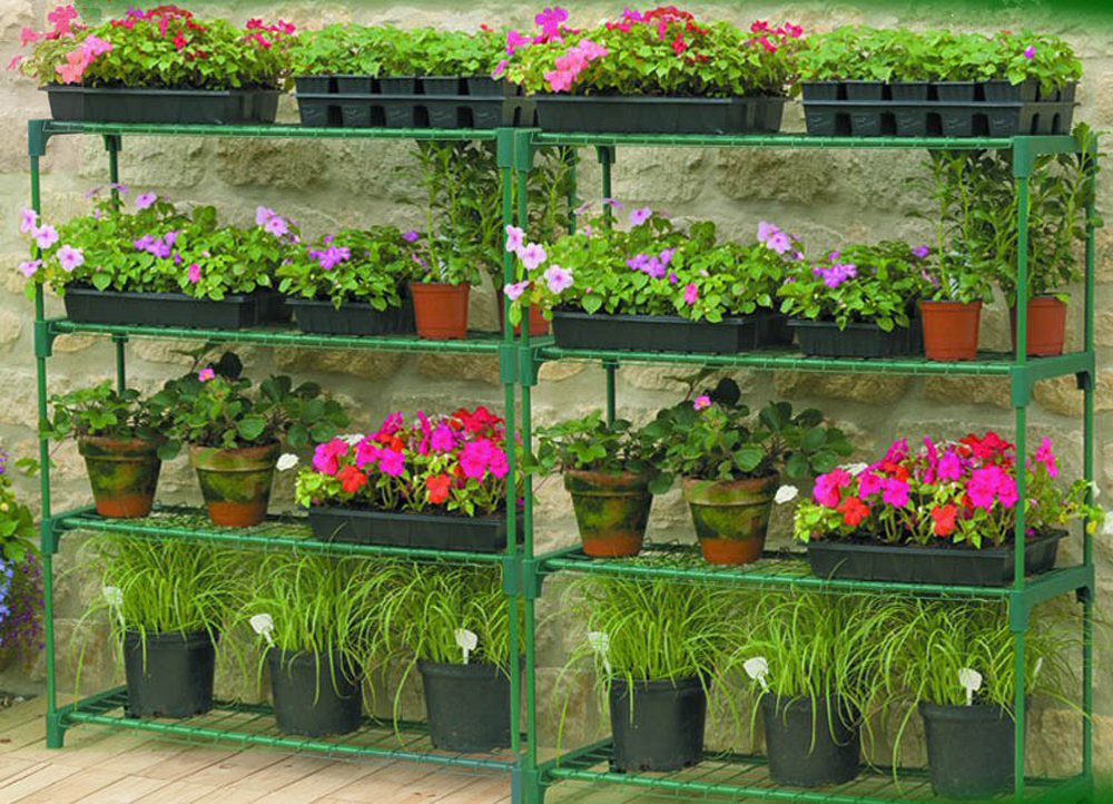 מערכת מדפים מודולארית כפולה לעציצים במרפסת או בגינה